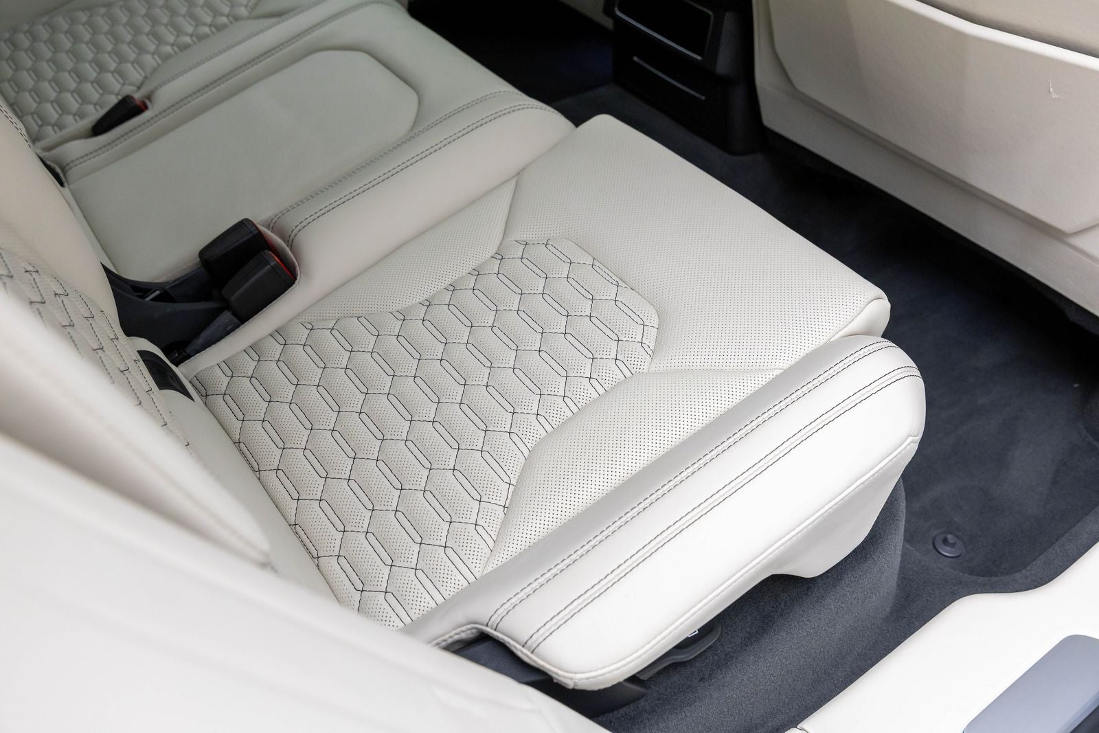 - Asiento trasero de cuero con respaldo abatible manual y reclinable 40-20-40 con respaldo dividido orientado hacia delante