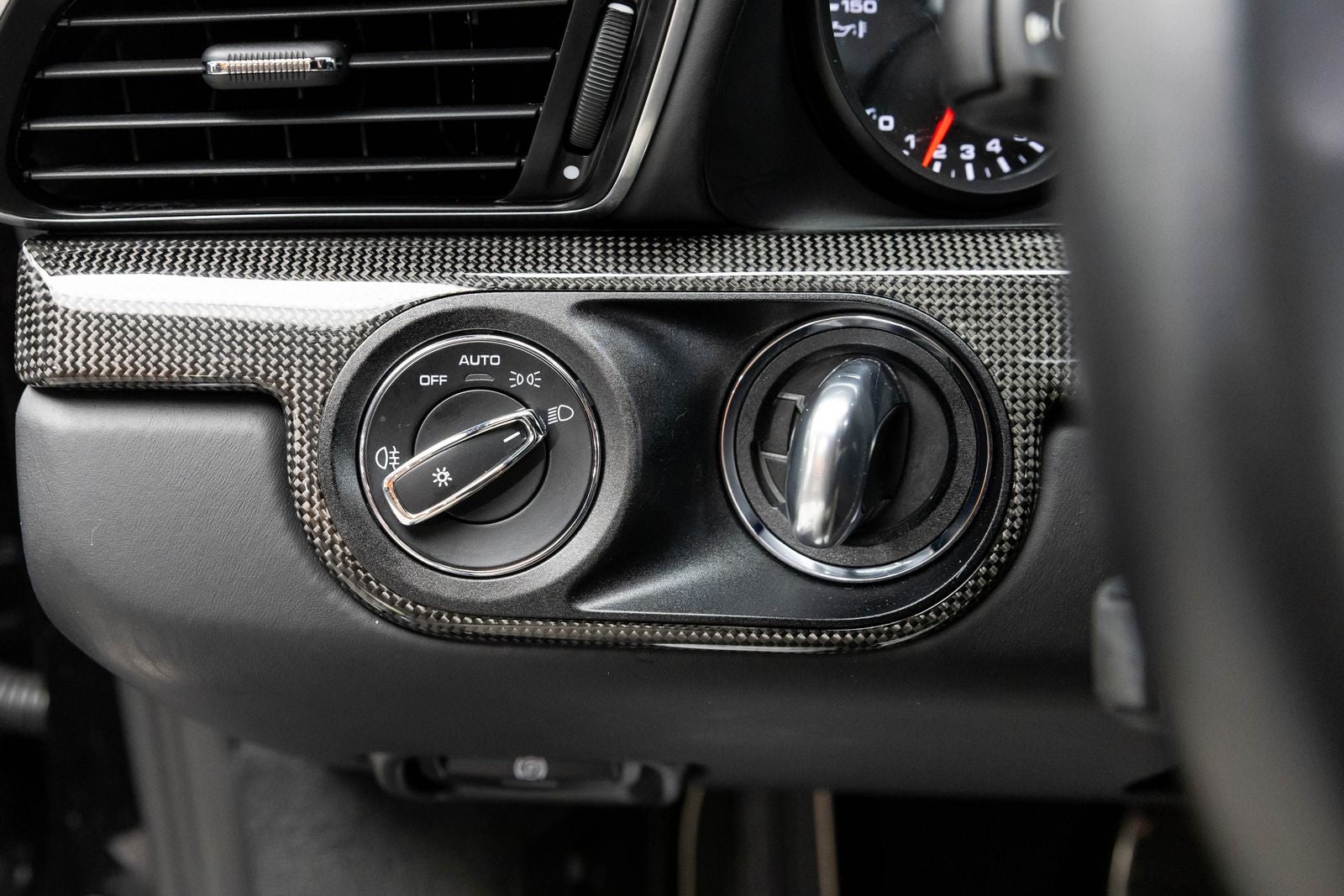 - Acabados interiores: inserciones de fibra de carbono en el salpicadero, en los paneles de las puertas y en la consola, y detalles interiores con acabado metálico