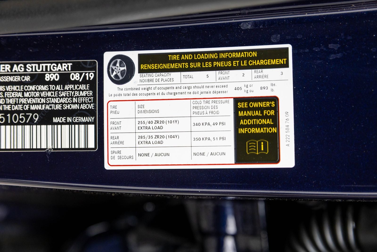 - Neumáticos: 255/40R20 delante y 285/35R20 detrás