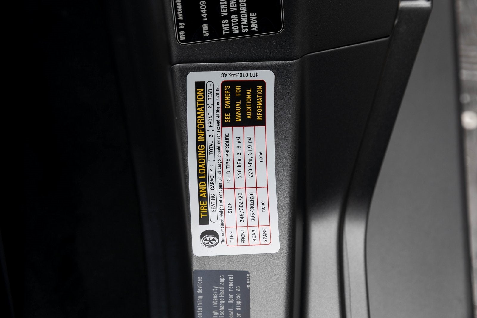 - Tamaño del neumático delantero: P245/30YR20